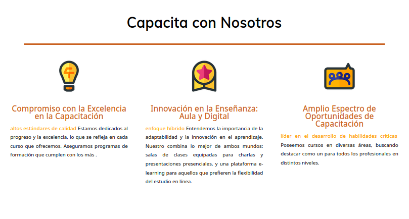 En JJR Capacitaciones SpA, estamos dedicados a ofrecer una experiencia de capacitación sin precedentes, diseñada para impulsar tu desarrollo profesional y personal. Nuestro enfoque único en la enseñanza, combinado con una plataforma e-learning, permite un aprendizaje flexible y eficaz, tanto presencial como a distancia. Estamos comprometidos en brindar formación de alta calidad adaptada a las necesidades del mundo actual. En JJR, tu éxito es nuestro compromiso.